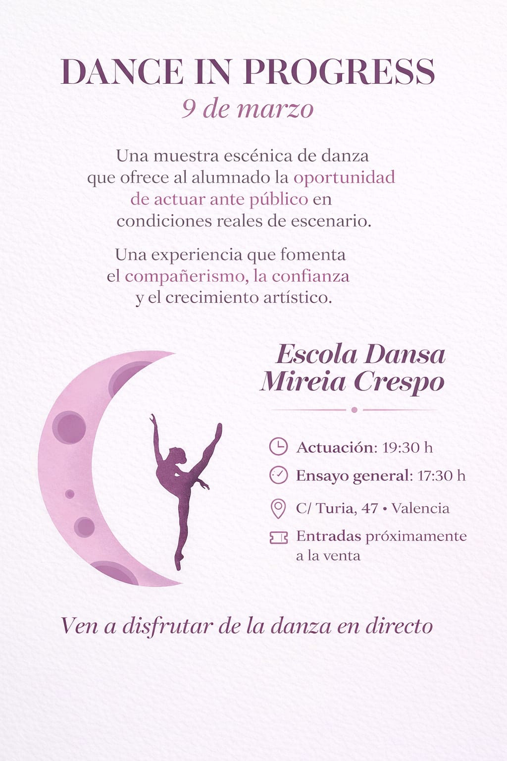 Te invitamos a atender a nuestro evento Dance In Porgress este 9 de marzo en C/Turia, 47 a las 19:30h.